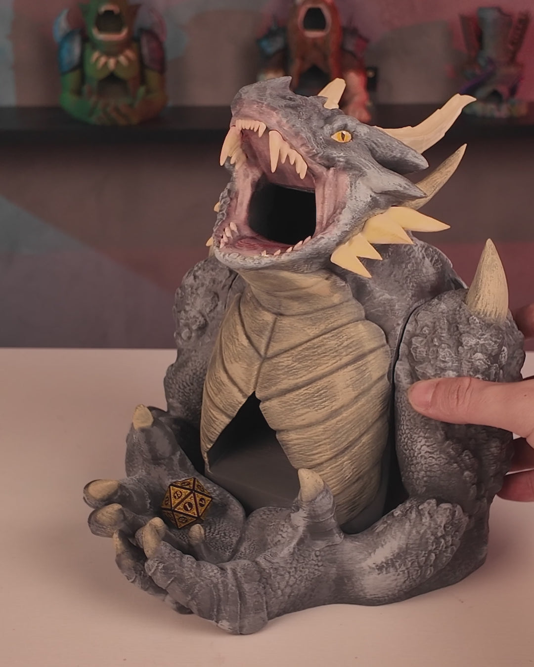 Unleash chaos at your gaming table with The Devourer—a menacing 3D-printed dice tower designed for epic D&D campaigns. This unpainted gray beast features an intimidating design that'll make your rolls feel legendary. Perfect for keeping dice organized and adding dramatic flair to your tabletop sessions. Watch your fate tumble through its chambers as you conquer dungeons and vanquish foes. A must-have for any adventurer's arsenal!